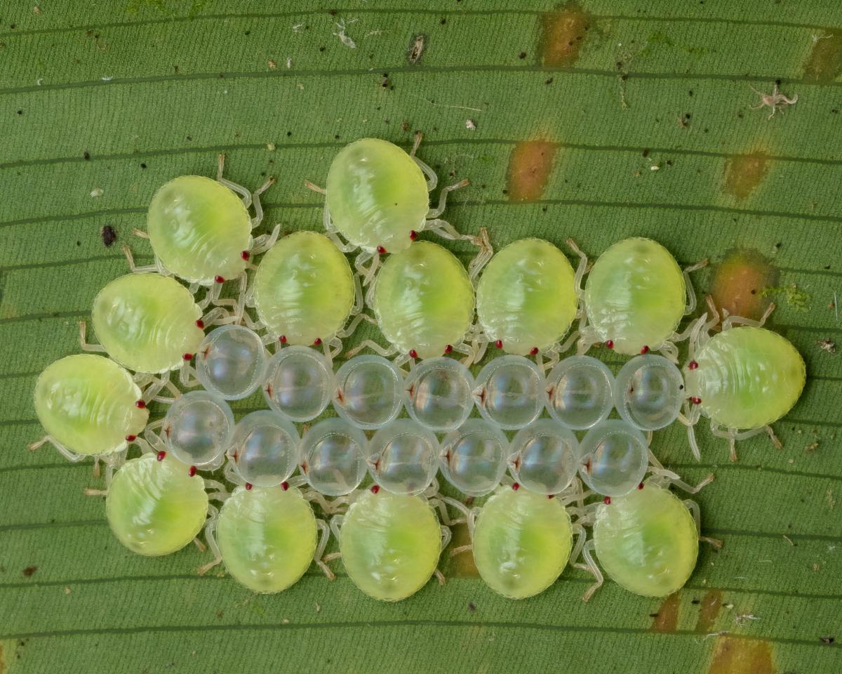 We only had to walk across the parking lot from the dining hall at La Selva to find the little cluster of true bugs and the egg cases from which they had emerged. And, after taking just a few paces across the Stone Bridge in November, we were able to watch this stunning Rufous-tailed Jacamar — one of the hundreds of gorgeous bird species found at the station. One May evening, we walked down to the second bridge on the Tres Rios trail at La Selva. Light rain made insect photography less than ideal, but it was an excellent evening for frogs. Then, we spotted one of the largest and most charismatic wood-boring beetles on the planet. [link to full essay]