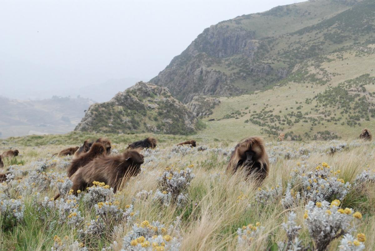Los datos de su investigación dilucidaron la creciente importancia de los tejidos graminoides (pastos) en la dieta de los primates Theropithecus, que data de 4 millones de años. Alrededor de 2 millones de años atrás, esta especie se dedicó a obtener todos sus nutrientes de las hierbas. La foto superior muestra una región de pasto afroalpina en Guassa, Etiopía. Estos pastizales esculpieron la dieta y ecología moderna de los gelada actuales (Theropithecus gelada). Dr. Dominy y su equipo midieron la dureza de la fractura de pastos C3 consumidos por las geladas y compararon los resultados con hojas C3 y pastos C4 de Mpala, Kenia. El artículo científico en Palaeo3 nació a raíz de este trabajo comparativo.