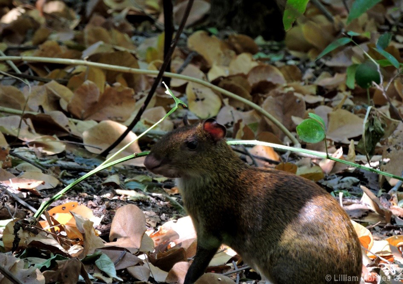 The mammal fauna is equally rich and visible, particularly during the dry season when peccaries, armadillos, Yaguarundis, coatis, agoutis, deers, and monkeys are attracted to the water holes.