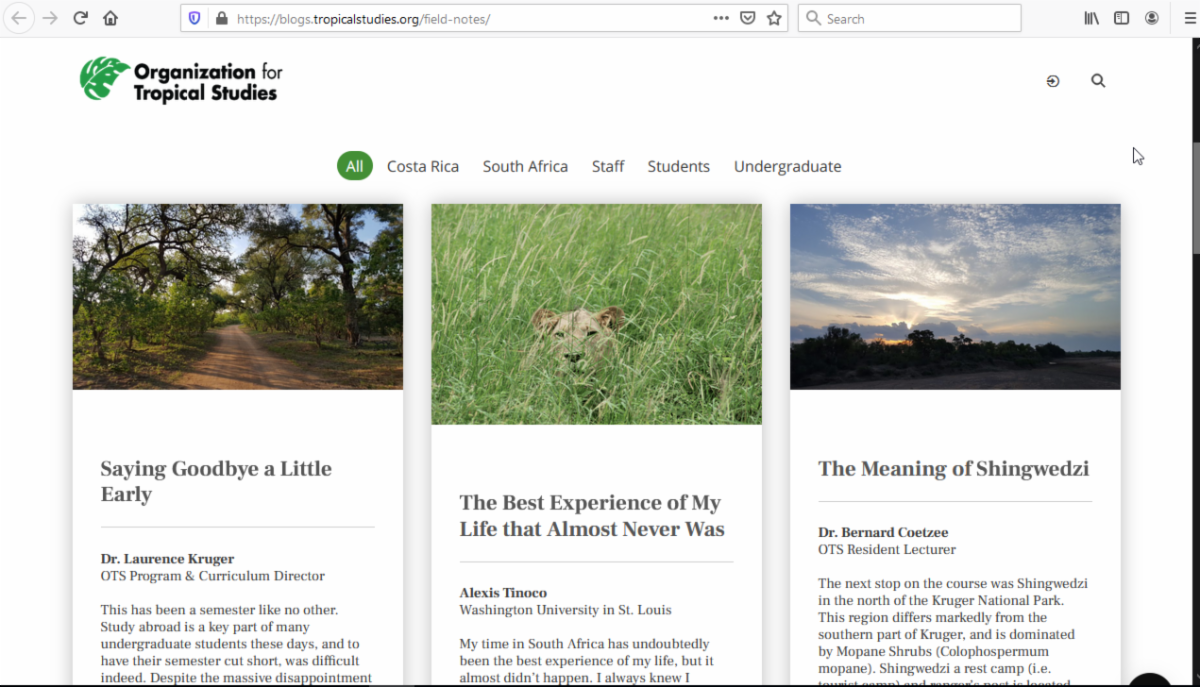 The newly redesigned Field Notes blog for OTS undergraduate and graduate courses gives you an inside look into our students’ educational adventures.